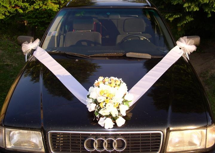 Zapožičiame svadobné dekorácie na autá, v salóne je možné zakúpiť stužky na ozdobenie automobilu, mašličky pre svadobných hostí a ďalšie.